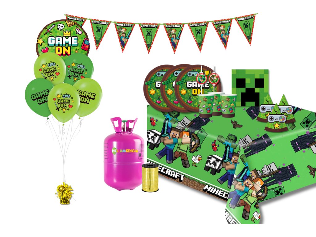 Vytvořte si pohádkovou narozeninovou párty ve stylu hry Minecraft s kompletní sadou produktů! Balóny, helium a párty stolování, vše v tematickém duchu pohádky, aby vaše oslava byla jedinečná. V pohádkové narozeninové sadě máte vše, co potřebujete k vytvoření nezapomenutelného narozeninového zážitku!
