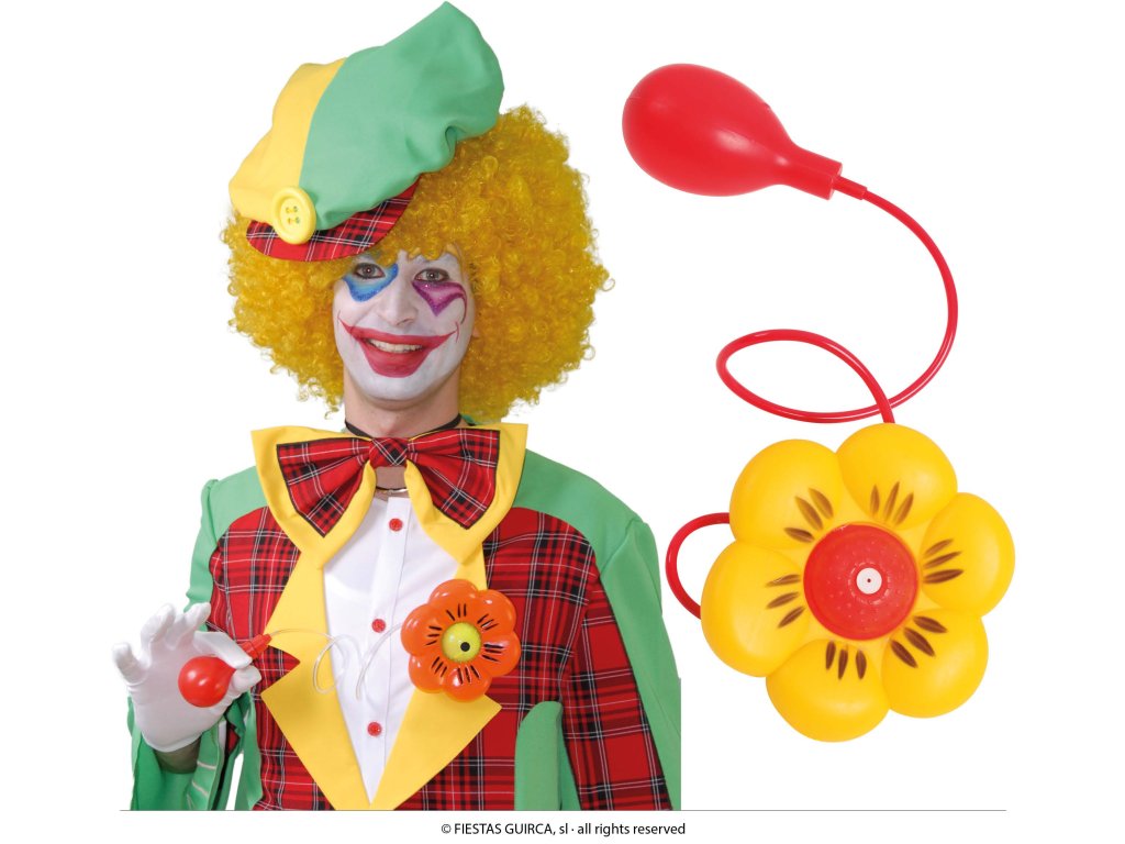 Překvapte své přátele a rozesmějte všechny kolem s klaunským květem, který po napuštění stříká vodu! Tato klasická klaunská rekvizita je ideální pro různé příležitosti, včetně dětských oslav, karnevalů, nebo jako doplněk k vašemu klaunskému kostýmu. Stačí jen přiblížit kvítek k nic netušící "oběti" a zmáčknout skrytou pumpičku pro zábavné stříkání vody.