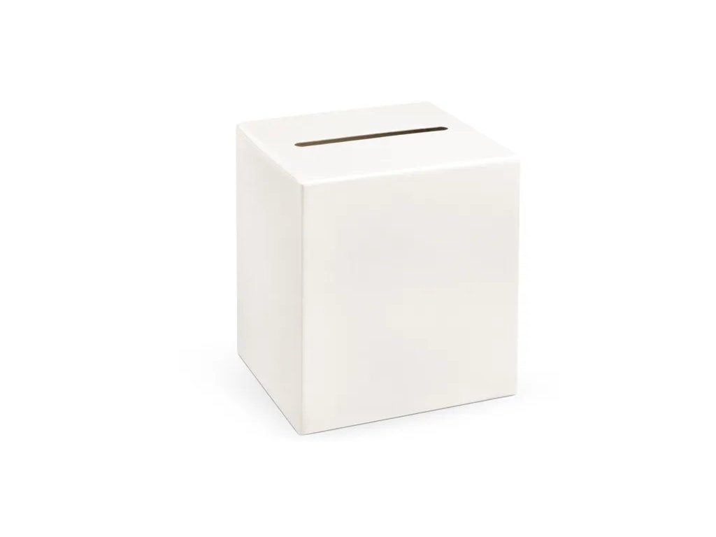 Tato krabička na obálky či peníze Vám nejen doplní výzdobu, ale pomůže Vám uložit malé pozornosti od hostů. Svatební krabička na obálky je v krémové barvě z metalizovaného papíru s otvorem pro vkládání přání. Krabici jednoduše složíte, a umístíte na viditelné místo na vaší svatební oslavě.