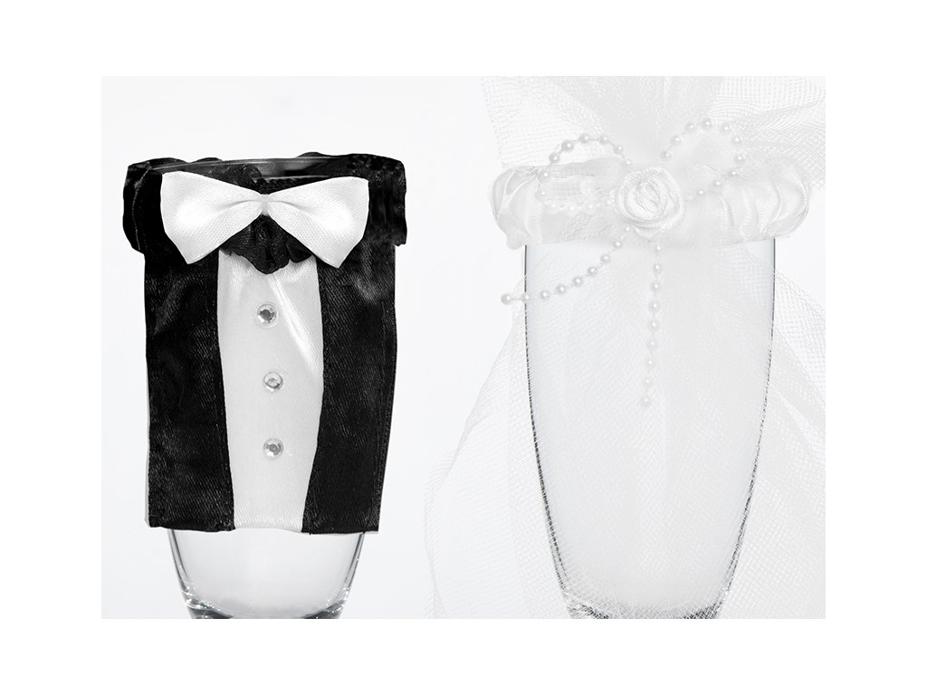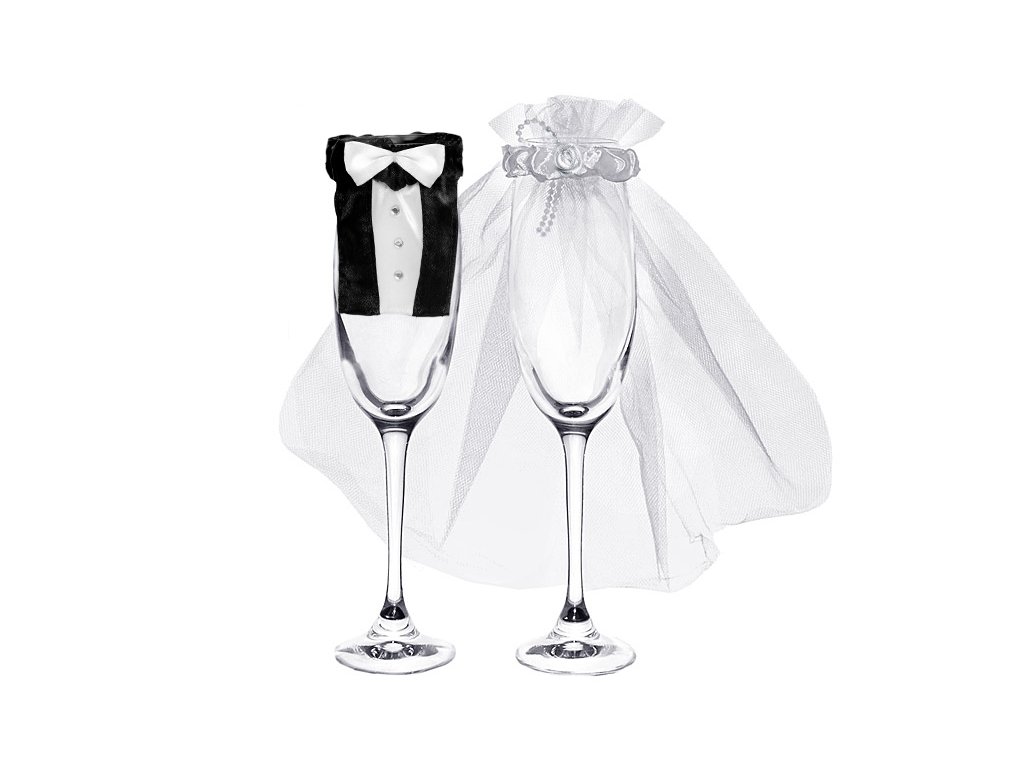Svatební oblečení na sklenice Ženich s nevěstou 2 ks