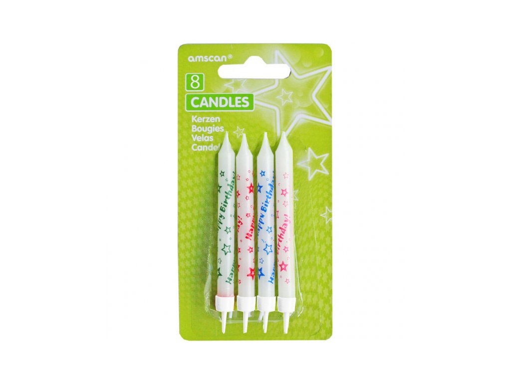 Svíčky - Barevné Happy Birthday 8 ks