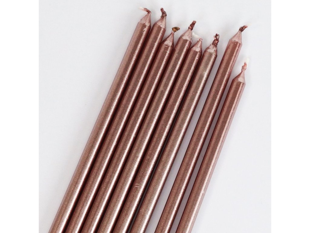 Svíčky s podstavci - růžovozlaté 18 cm 16 ks