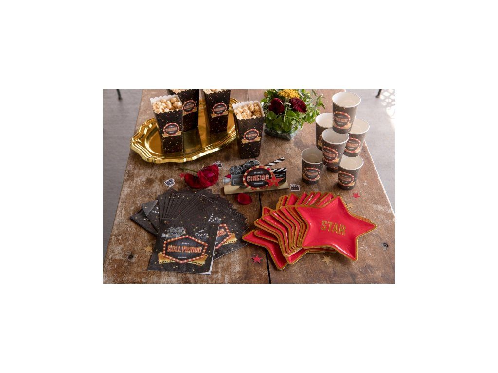 Každá oslava může mít výzdobu vyladěnou do nejmenších detailů. Připravujete-li párty výzdobu na narozeninovou oslavu v party tématu Hollywood nesmí Vám chybět originální stolování v podobě ubrousků.