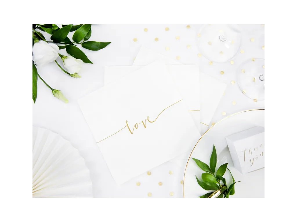 Každá oslava může mít výzdobu až do nejmenších detailů a to, i když jde o párty stolování. Nezapomeňte při pořádání párty ani na ubrousky, které jsou praktické a zároveň skvělou dekorací na oslavě. Párty stolování můžete doplnit pohárky, talířky a ubrusem. Tyto třívrstvé bílé papírové ubrousky se zlatým nápisem LOVE jsou vhodné pro svatební hostinu, ale i pro jiné příležitosti.