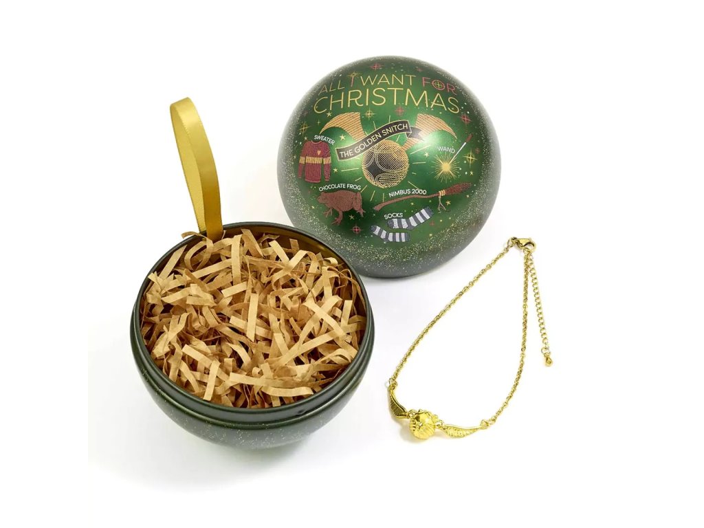Vánoční koule Harry Potter s náramkem Zlatá střela je ideálním dárkem pro fanoušky kouzelnického světa. Součástí balení je náramek, který nabízí fanouškům možnost nosit kousek své oblíbené série. Tento set je perfektní pro ozdobení vánočního stromku nebo jako originální dárek pro všechny milovníky Harryho Pottera.