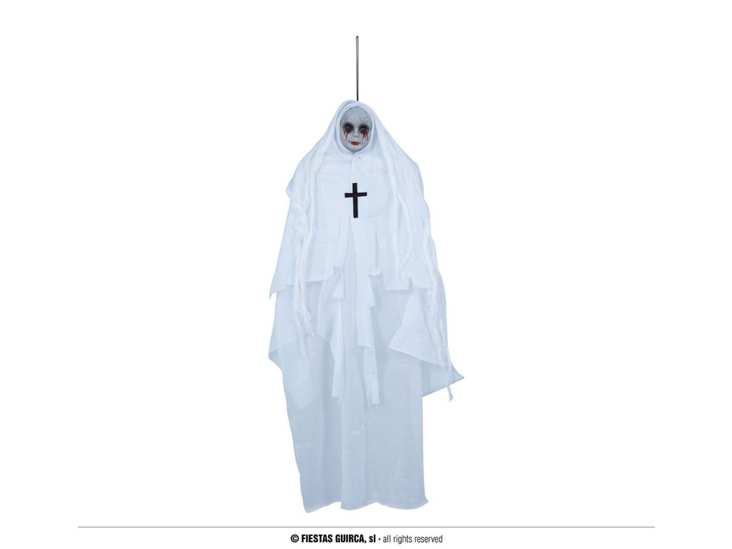 Visicí dekorace - Bílá jeptiška 65 cm